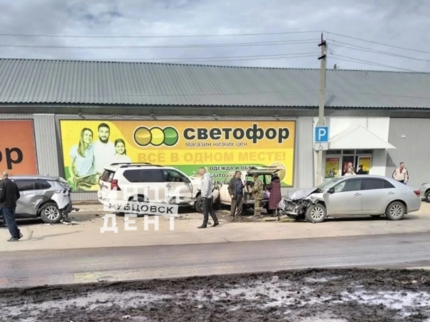 5 апреля в Рубцовске около 15:35 на пер. Гражданский произошло дорожно-транспортное происшествие с участием четырёх автомобилей. Водитель “Toyota Allion” не справился с управлением и столкнулся с “Toyota Corolla Cross”, после чего цепная реакция привела к столкновению с “Toyota Land Cruiser Prado” и ВАЗ-21213 (Нива).