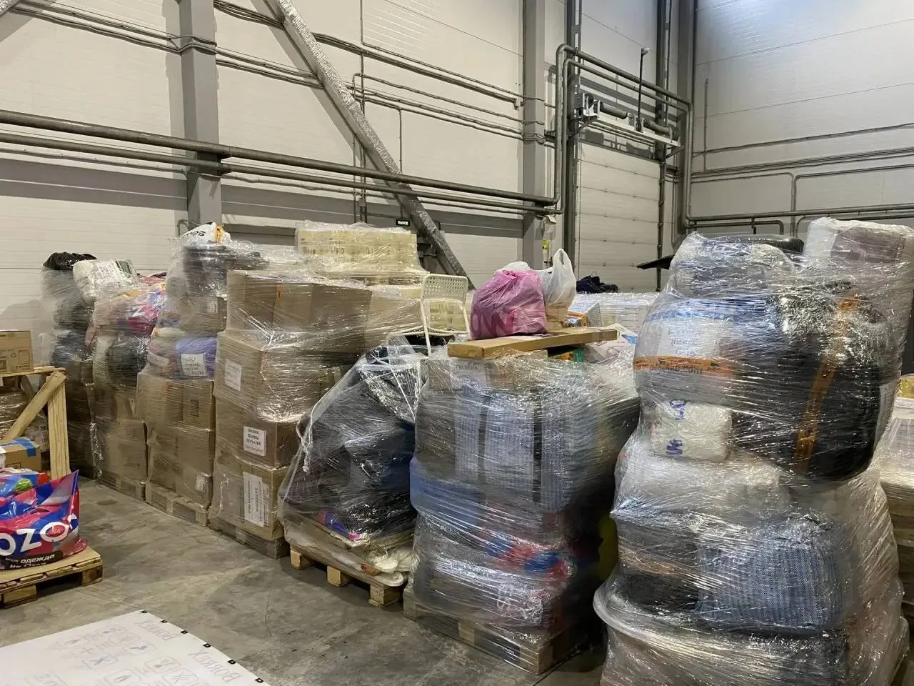 В состав гуманитарного груза вошли перевязочные средства и антисептики, продукты питания длительного хранения, а также маскировочные сети.