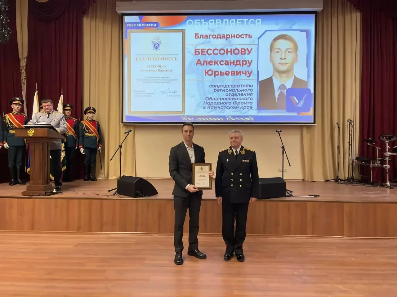Среди присутствующих на мероприятии – курсант Санкт-Петербургской академии Следственного комитета Даниил Пепелов. Ранее он добровольно заключил контракт на прохождение военной службы в зоне СВО. Там он был серьезно ранен и сейчас находится на лечении.