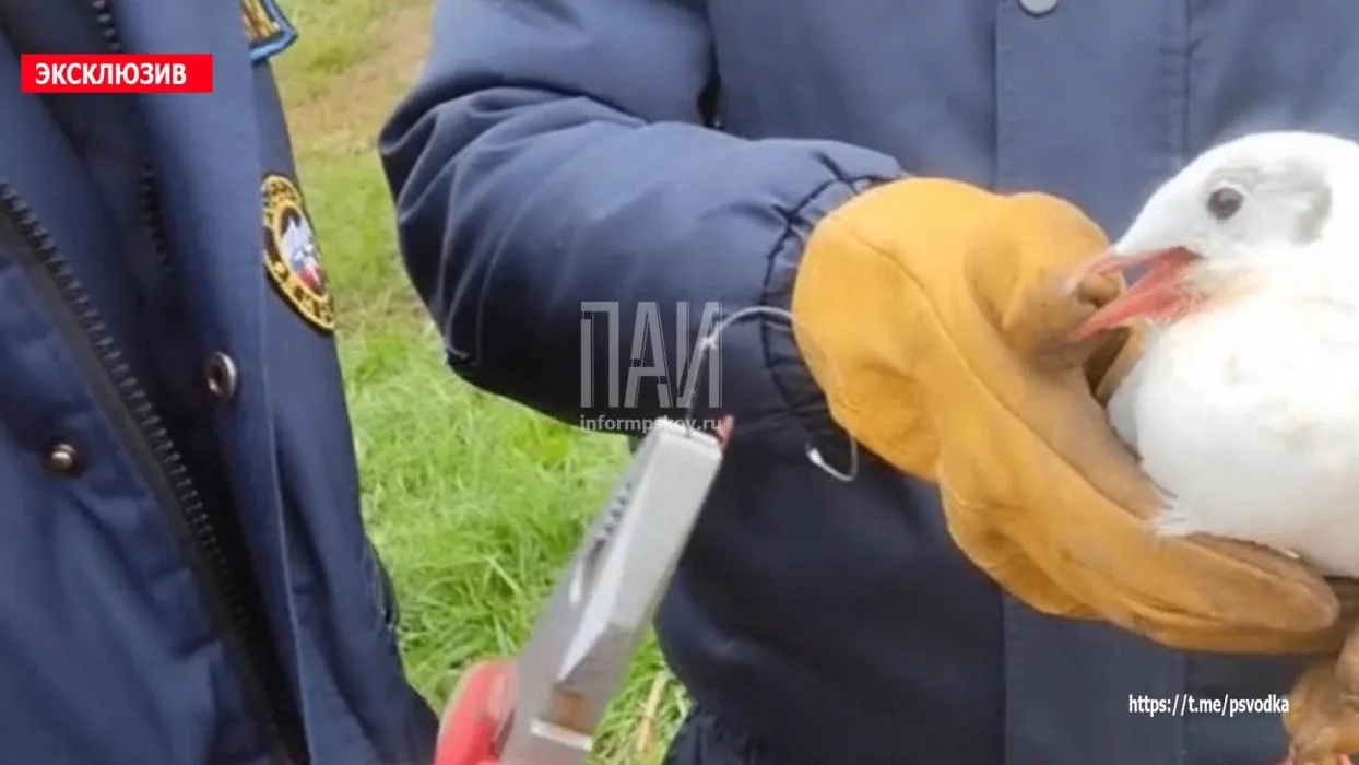 Чайку с рыболовным крючком в клюве спасли в Пскове