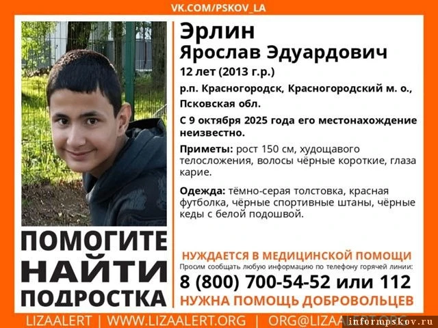 ❗️12-летний Ярослав Эрлин пропал в Красногородске