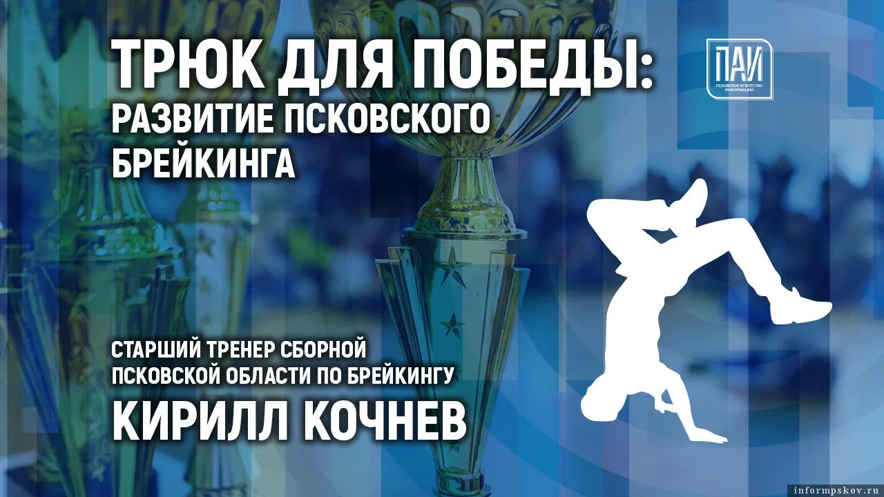 Об этом и многом другом расскажет старший тренер сборной Псковской области по брейкингу Кирилл Кочнев.
