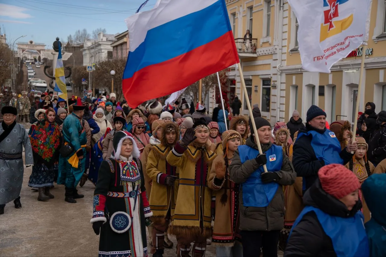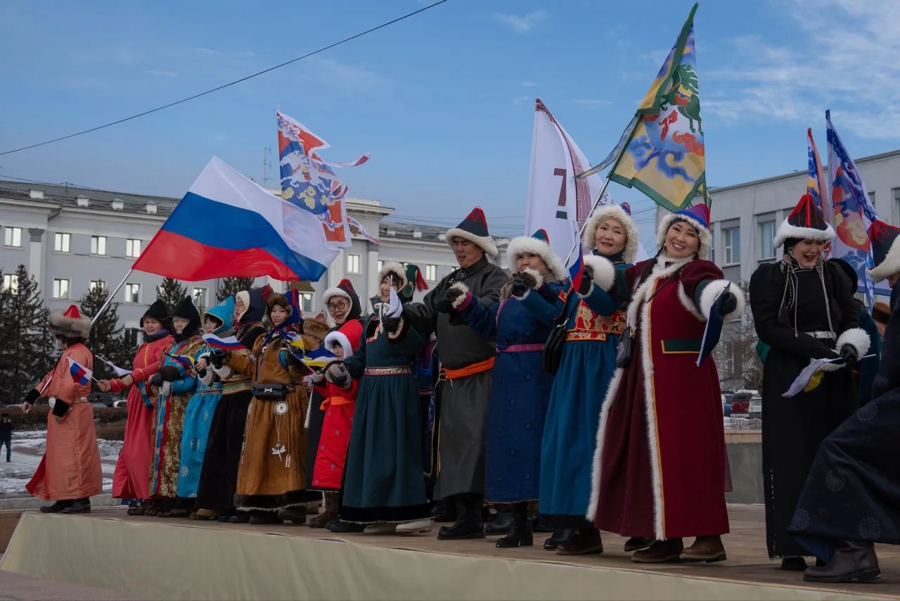 Яркое зимнее шествие в национальных костюмах проходит в столице Бурятии уже в пятый раз.