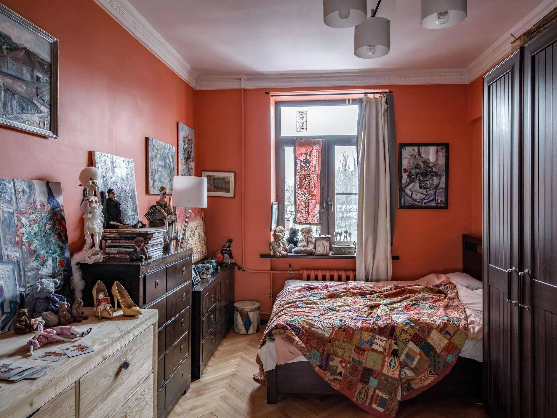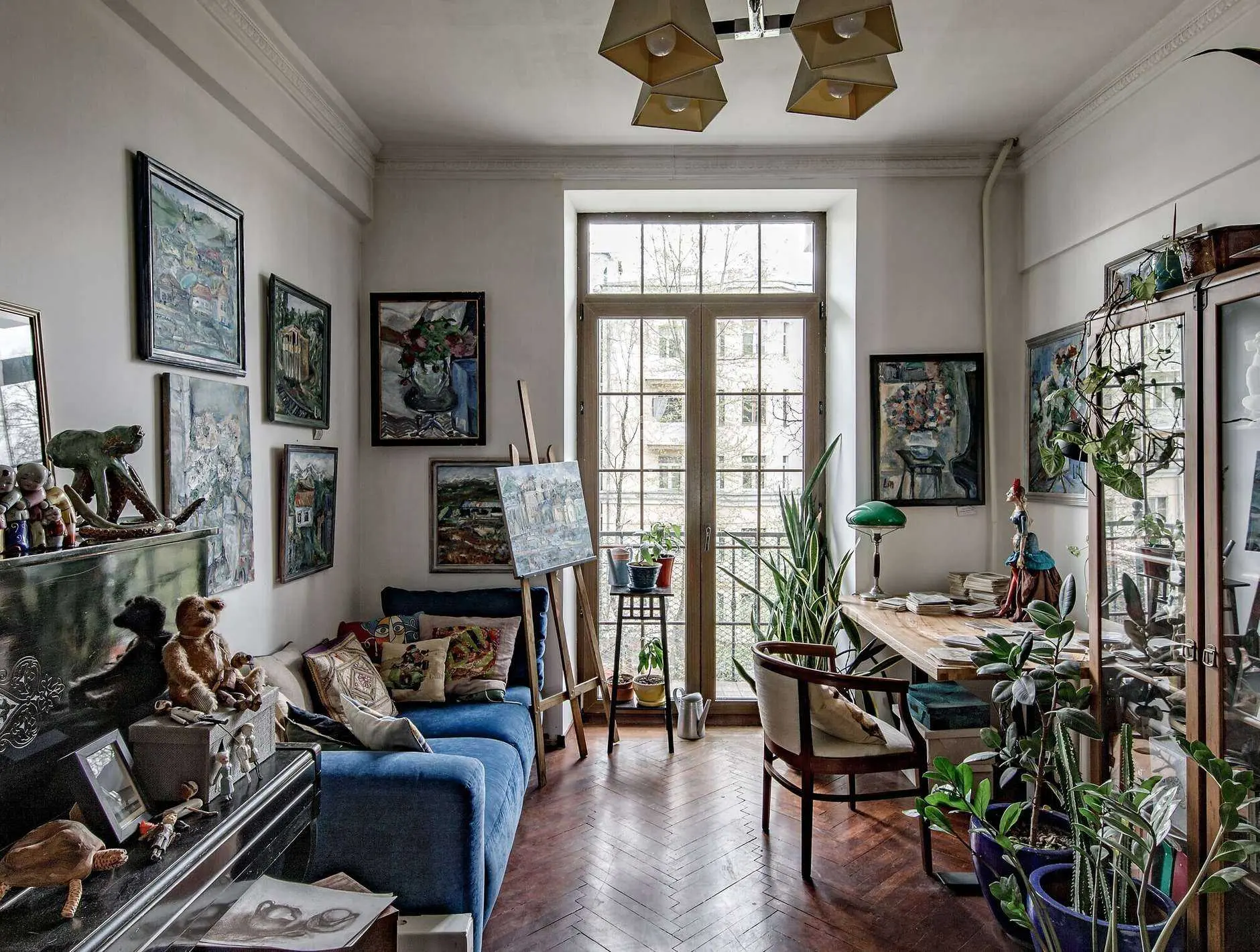 Творческая атмосфера с элементами старины в сталинке 80 м² для семьи художников