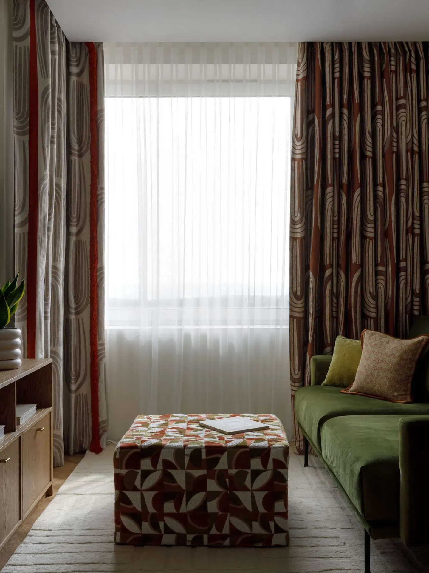 Этот интерьер дизайнер Настасья Стрижова создала для своей клиентки Сафины — человека с яркой и удивительной энергетикой. По профессии Сафина — стилист одежды, профессионально занимается диджеингом, а также увлекается боксом, путешествиями и искусством. Интерьер для нее разрабатывался с особым вниманием к личности, интересам и активному ритму жизни хозяйки. В доме вместе с Сафиной живет ее дочь и кошка.