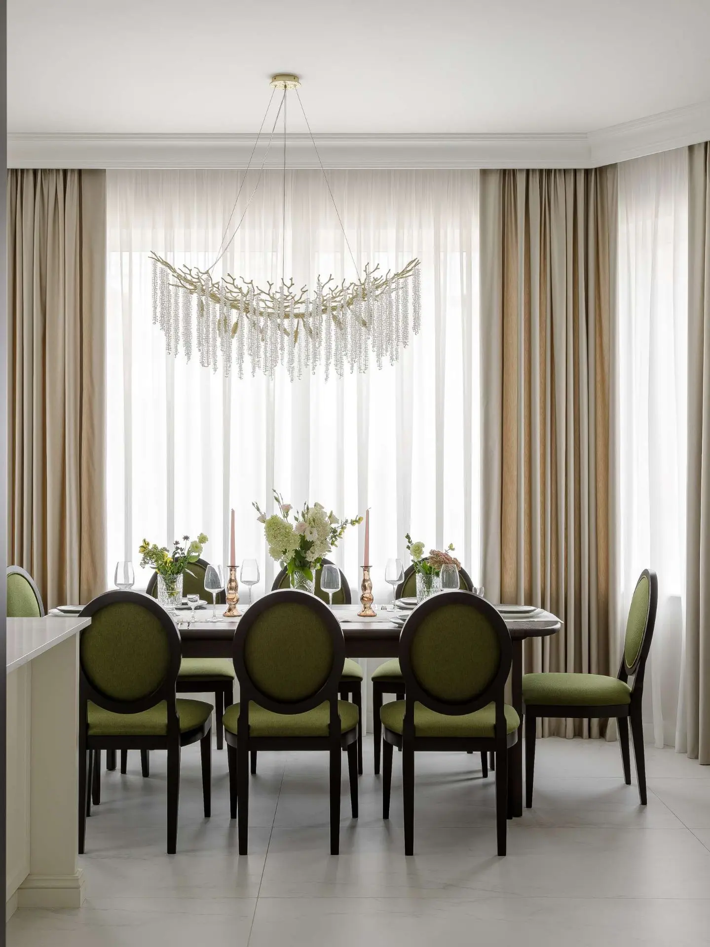 Дизайнер Татьяна Черкашина разработала интерьер трехэтажного дома для семьи с тремя детьми. Изначально заказчики стремились к созданию нейтрального интерьера, однако в процессе сотрудничества приняли решение добавить выразительные акценты цвета зеленого яблока. За основу дизайнер взяла стиль неоклассика, который подразумевает использование лаконичных линий, гармоничных пропорций и элегантных деталей.