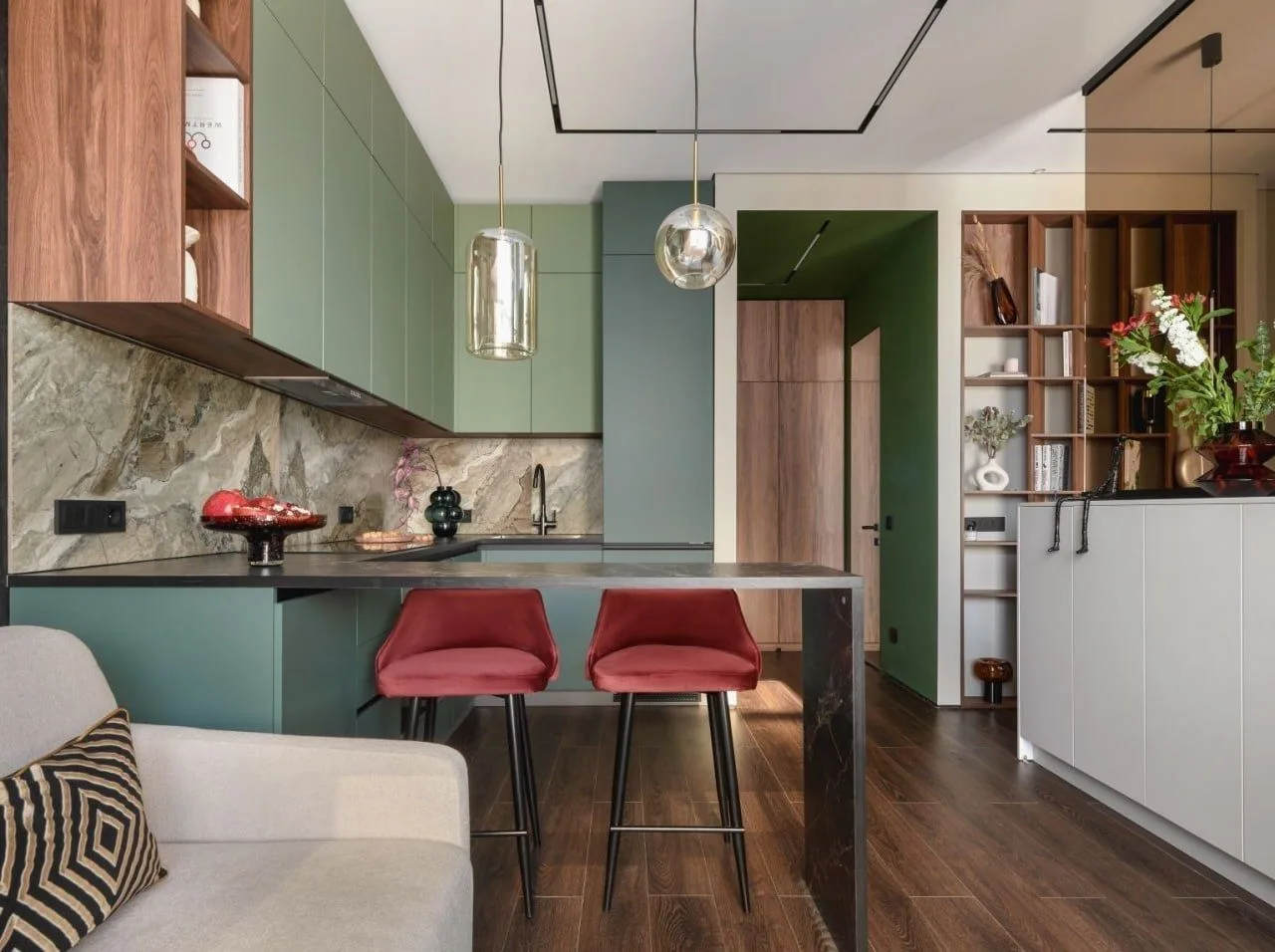 Интересная планировка, яркие детали и много хранения в евродвушке 40 м²