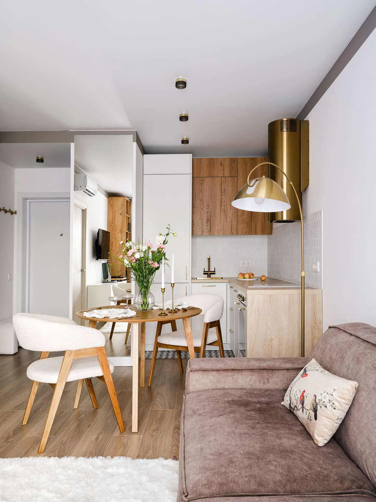 Эта квартира в московской новостройке была обустроена дизайнером Линой Князевой для своей мамы. Интерьер наполнен уютом загородного дома: светлая отделка гармонирует с теплым деревом фасадов. Мягкий свет, жалюзийные двери, плавные округлые формы и текстиль создают расслабленную атмосферу.