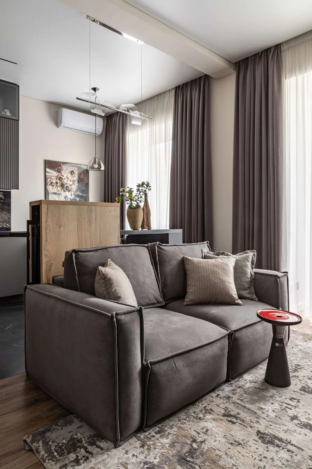 Дерево, камень и природные оттенки: интерьер питерской двушки 98 м² с интересным миксом фактур