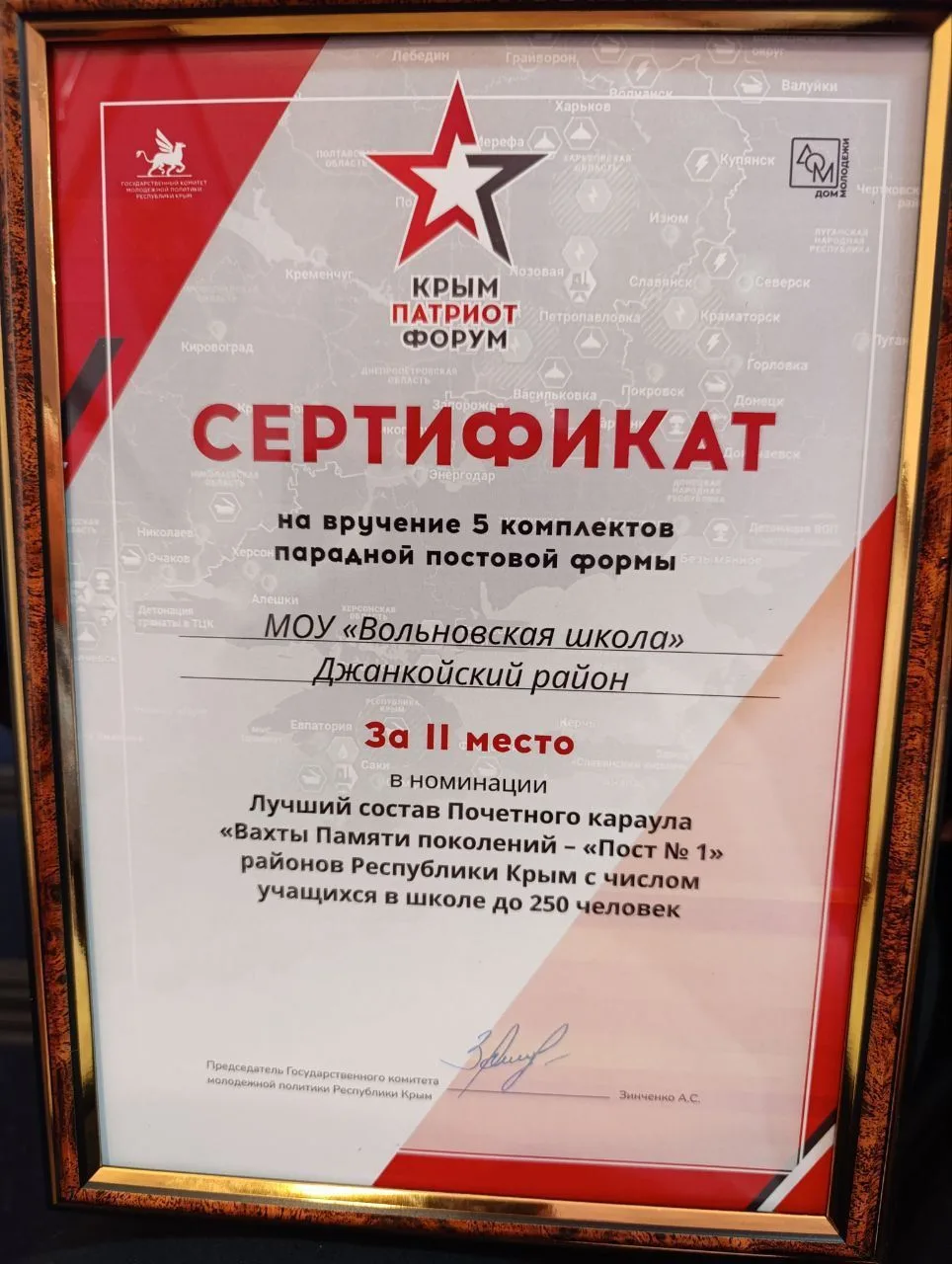 Команда Вольновской школы заняла второе место в Республике Крым в номинации «Лучший состав Почетного караула «Вахты Памяти поколений – «Пост №1»!