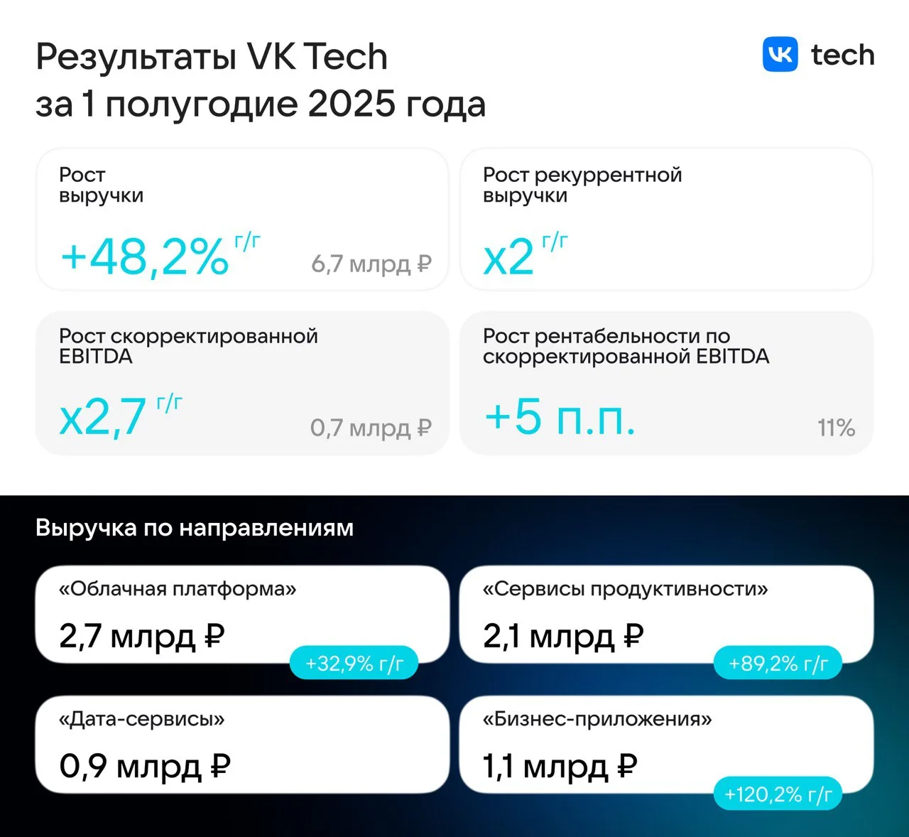 Третий раз в жизни, но уже вполне уверенно делимся результатами VK Tech за I полугодие 2025 года.