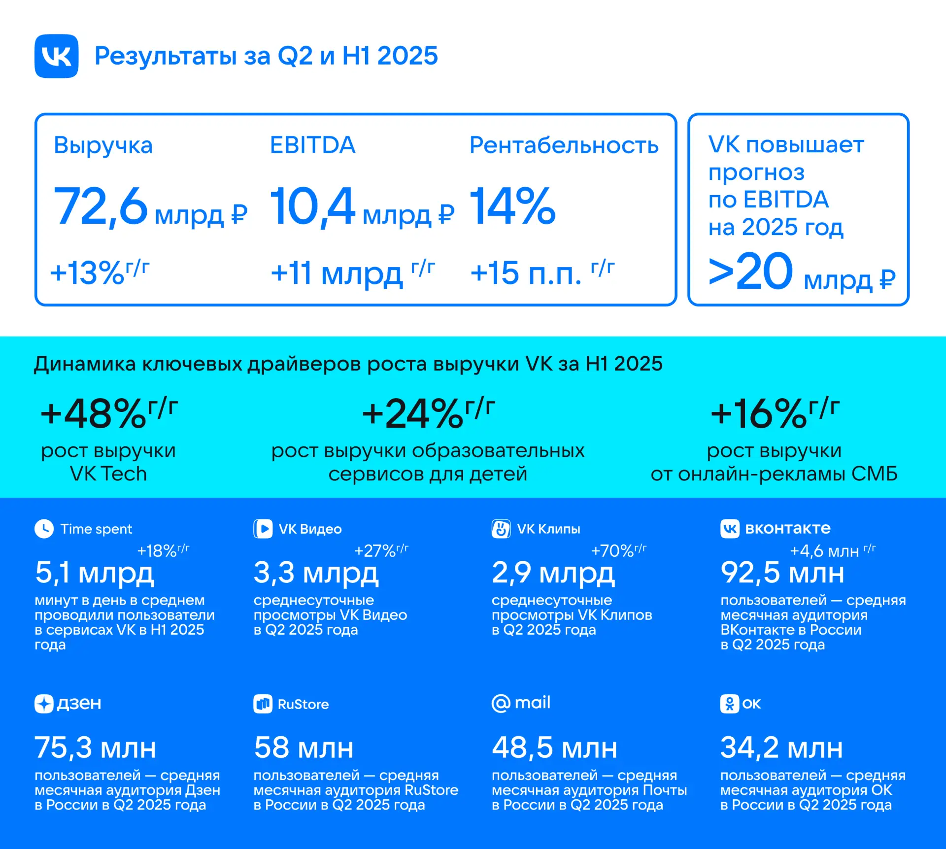 Делимся результатами VK за I полугодие и II квартал 2025 года