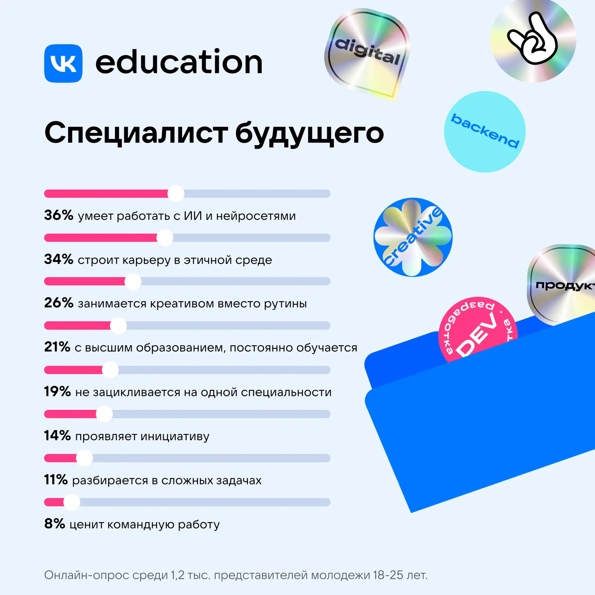 ученики познакомятся с пятью направлениями — ИИ, Разработка, Инфобез, Креативные индустрии и Нетехнические профессии, а затем поработают над практическими заданиями и получат советы по построению карьеры в IT вместе с рекомендациями программ VK Education