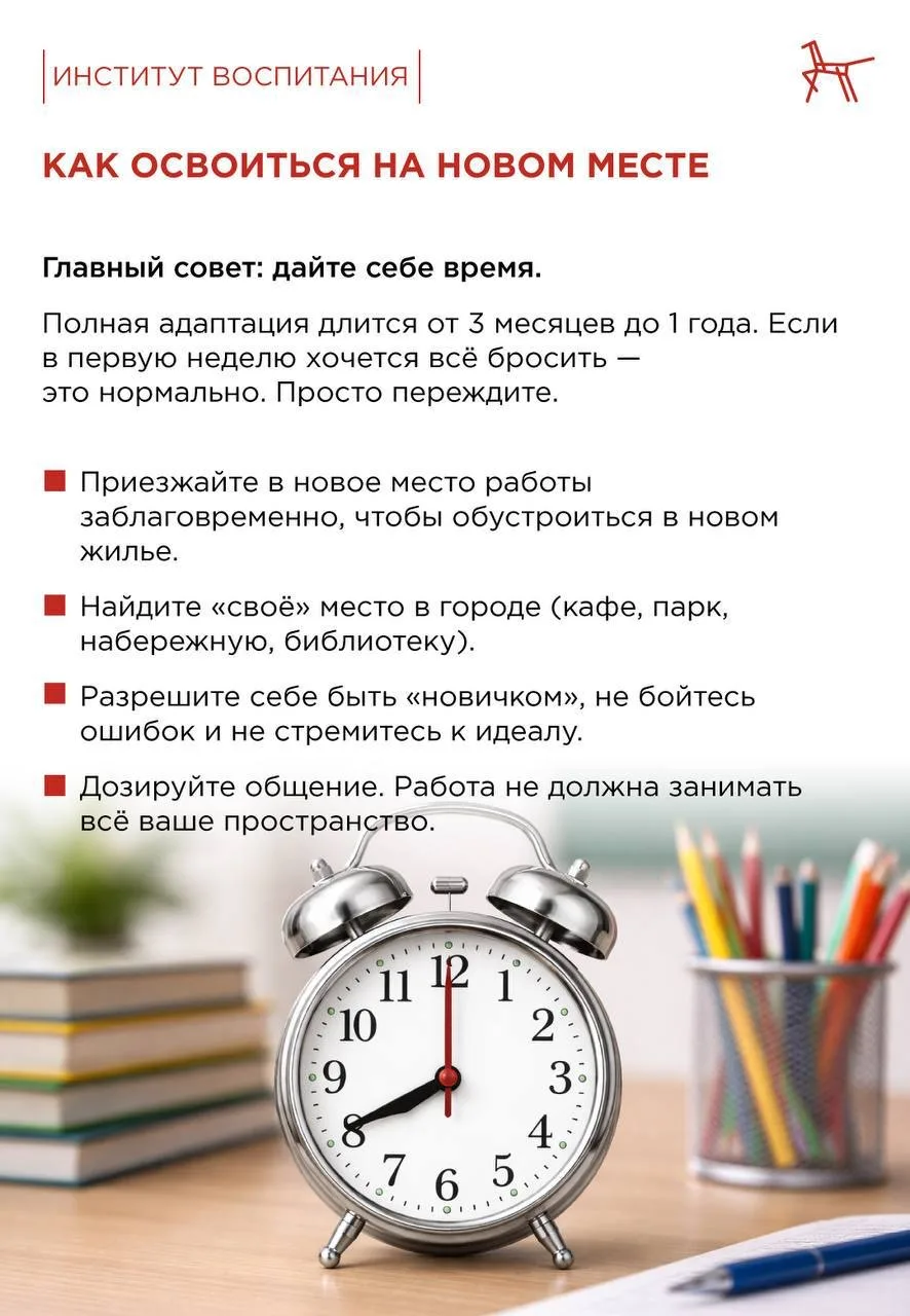 В карточках собрали советы, которые помогут адаптироваться на новом месте. Больше полезных статей — на сайте «Семья и школа»: