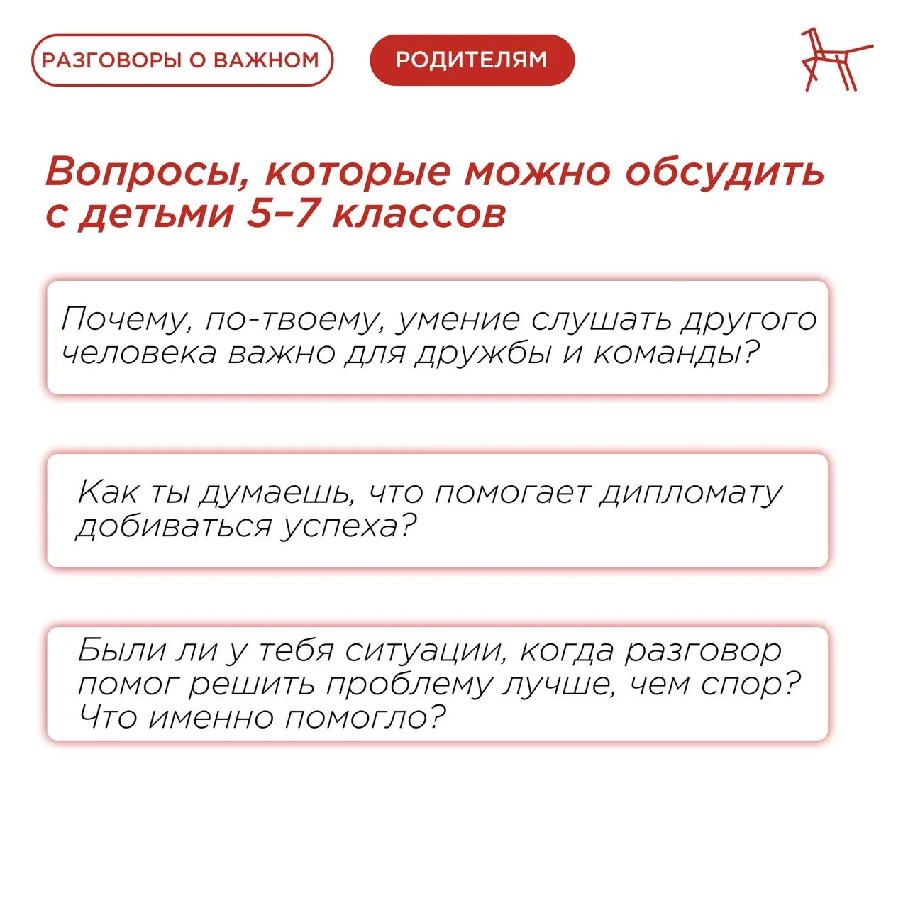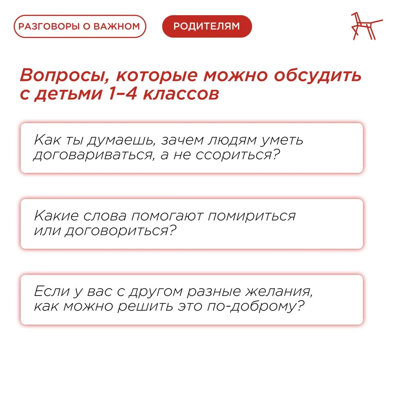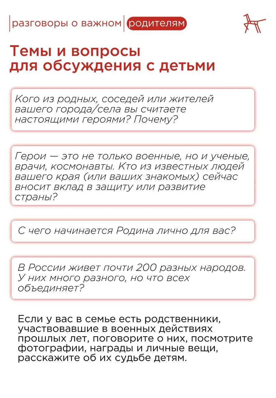 О ключевых моментах, которые следует затронуть, рассказали в карточках, подготовленных по материалам Светланы Колесник, эксперта Федерального центра «Профилактика» ⤴️