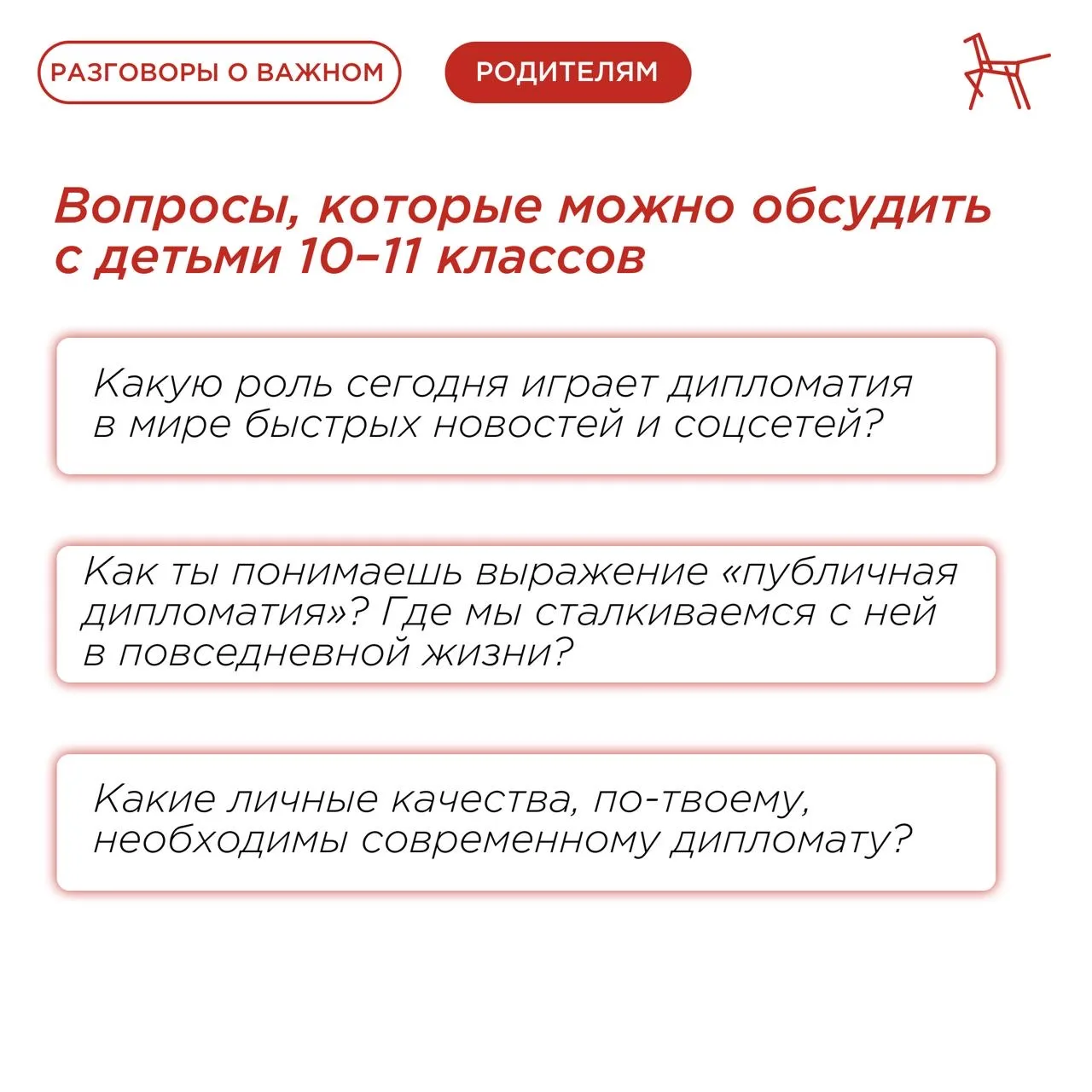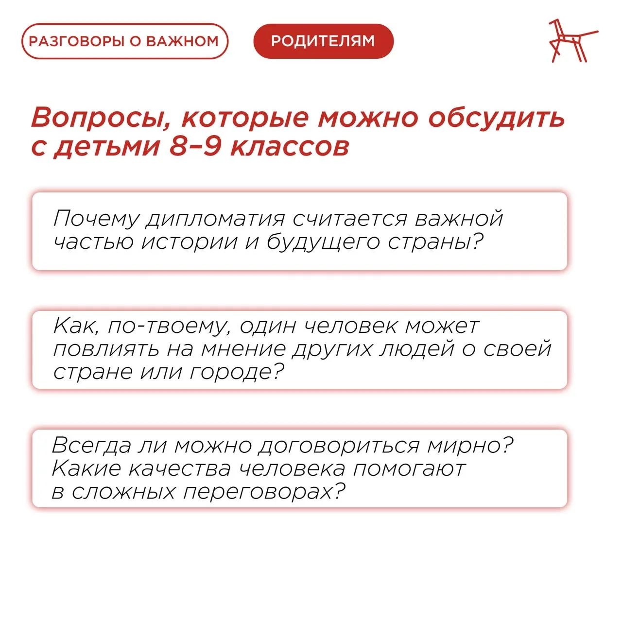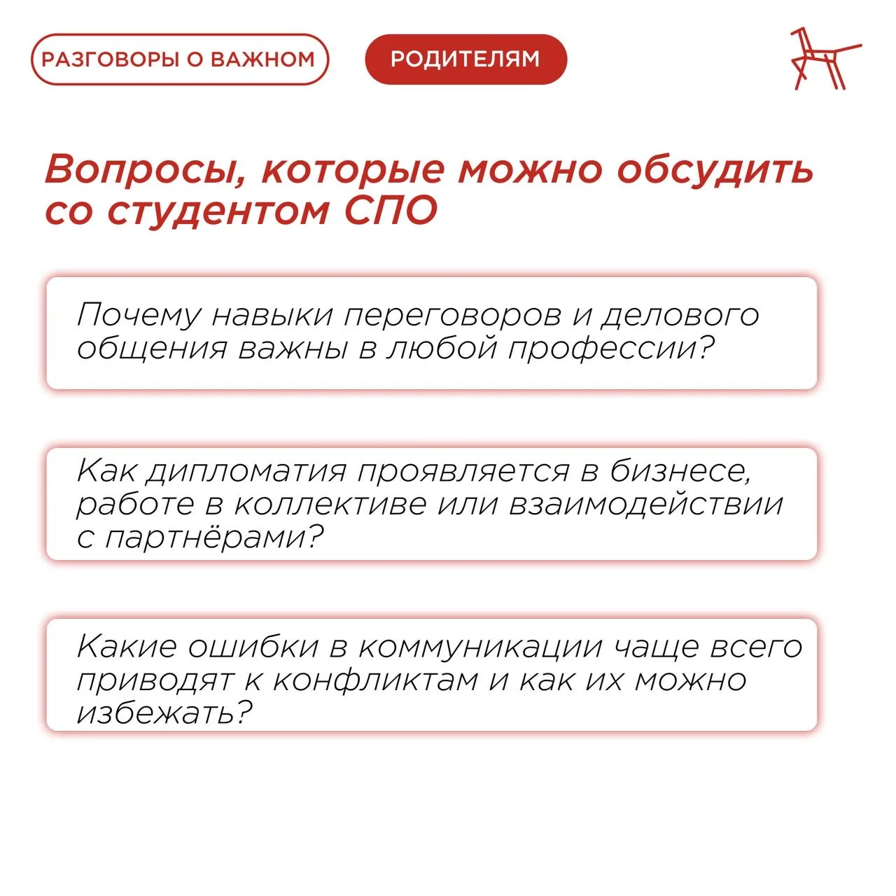 О ключевых моментах, которые следует затронуть, рассказали в карточках, подготовленных по материалам Светланы Колесник, эксперта Федерального центра «Профилактика» ⤴️