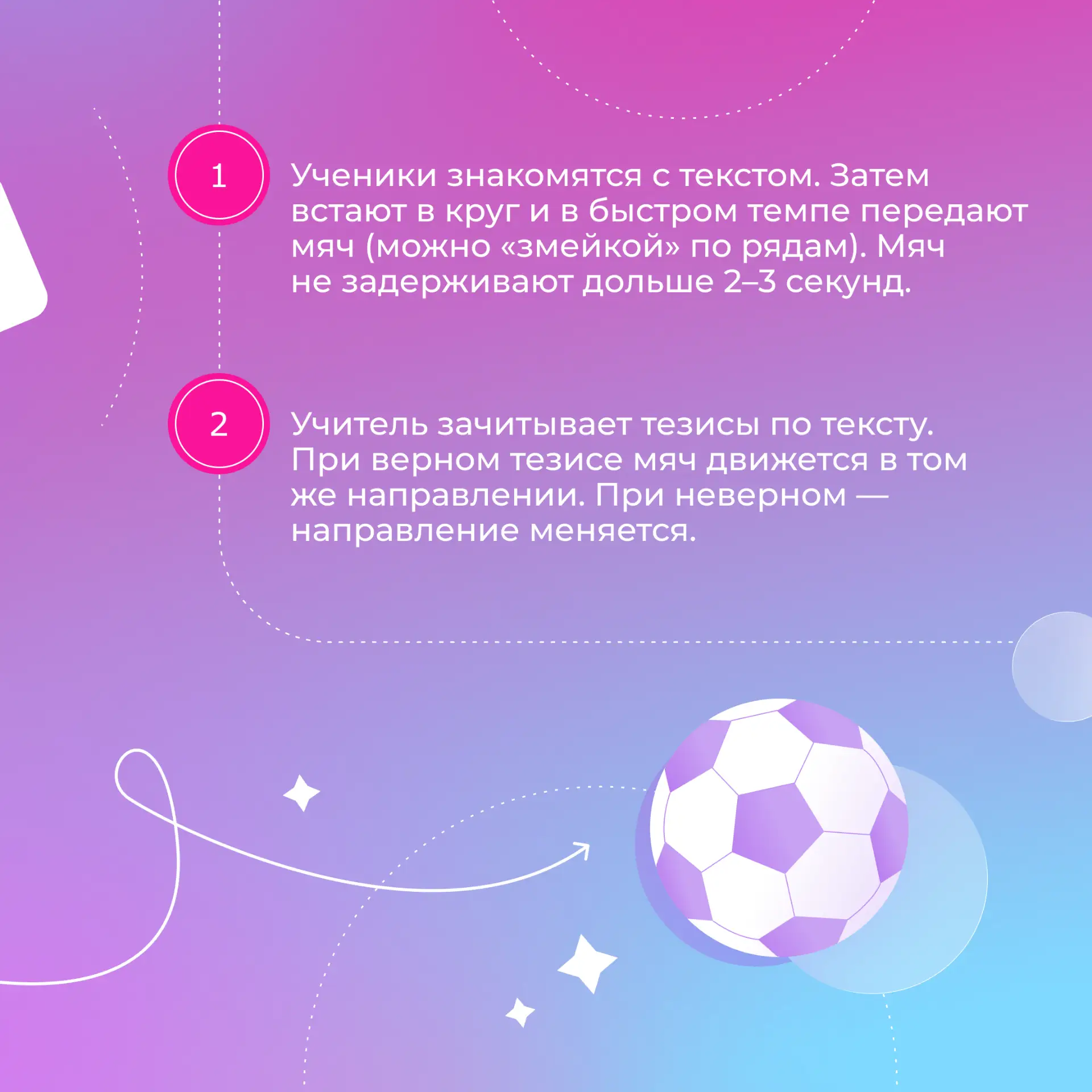 💡 Включает внимание всего класса (никто не знает, когда повернут мяч).