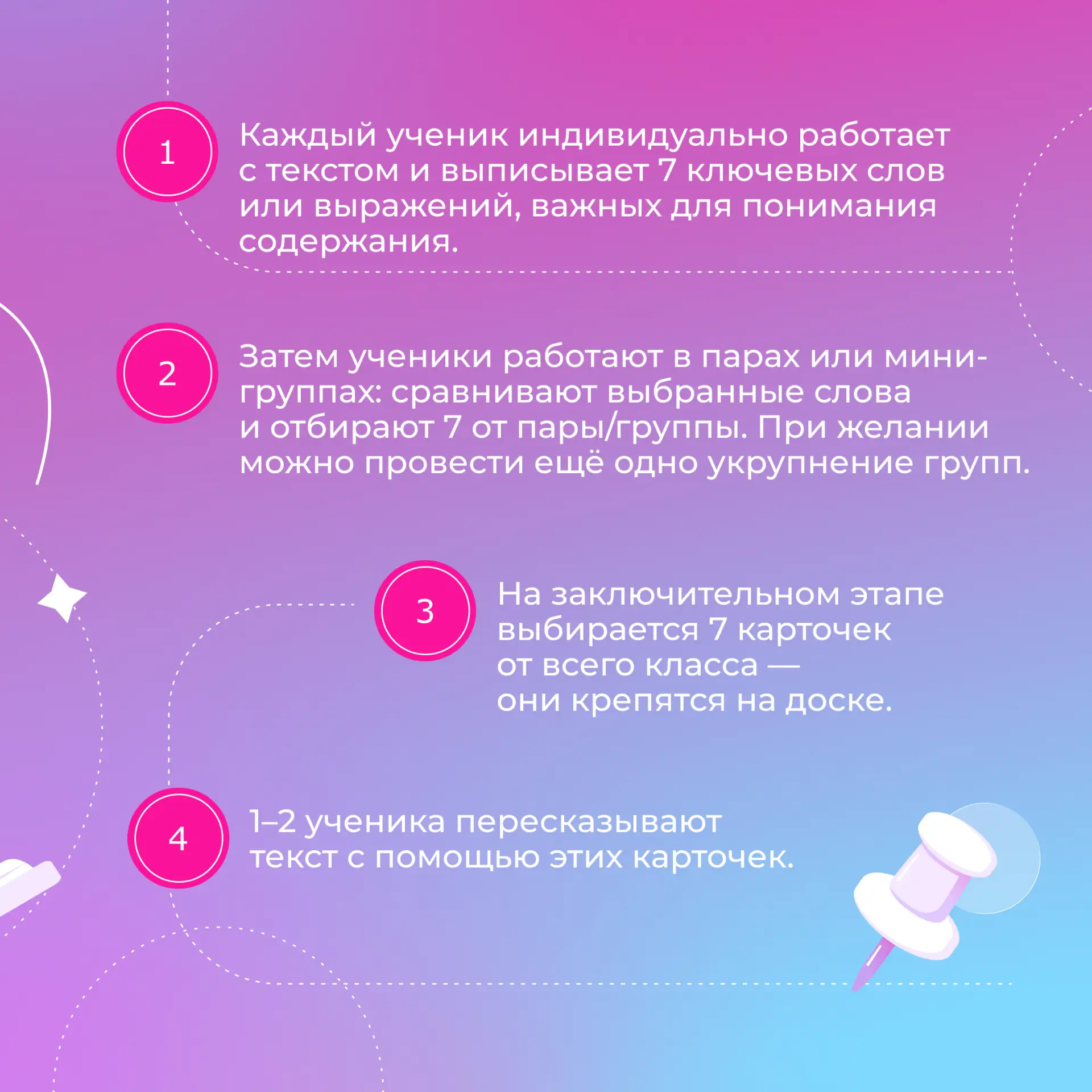 🎨 Визуализация: общие 7 карточек создают «скелет» текста, который видит весь класс.