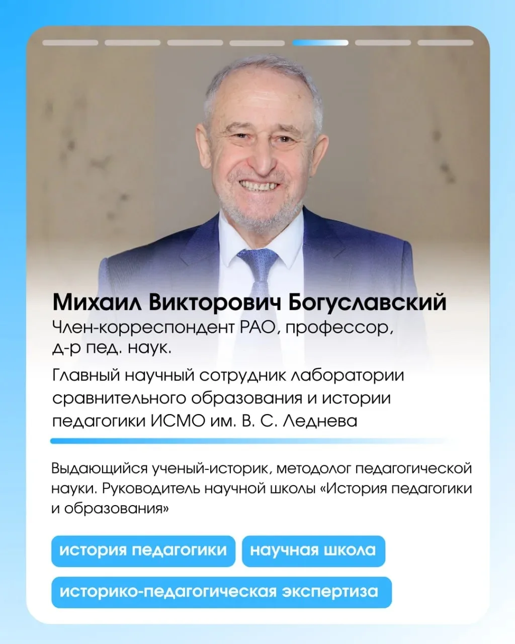 📌 Историю педагогики часто воспринимают как мемориальный раздел науки. Михаил Викторович Богуславский превращает её в действующий инструмент управления образованием. Более сорока лет его научная деятельность посвящена не просто изучению прошлого, а поиску в нём живых, действенных смыслов для современной школы.