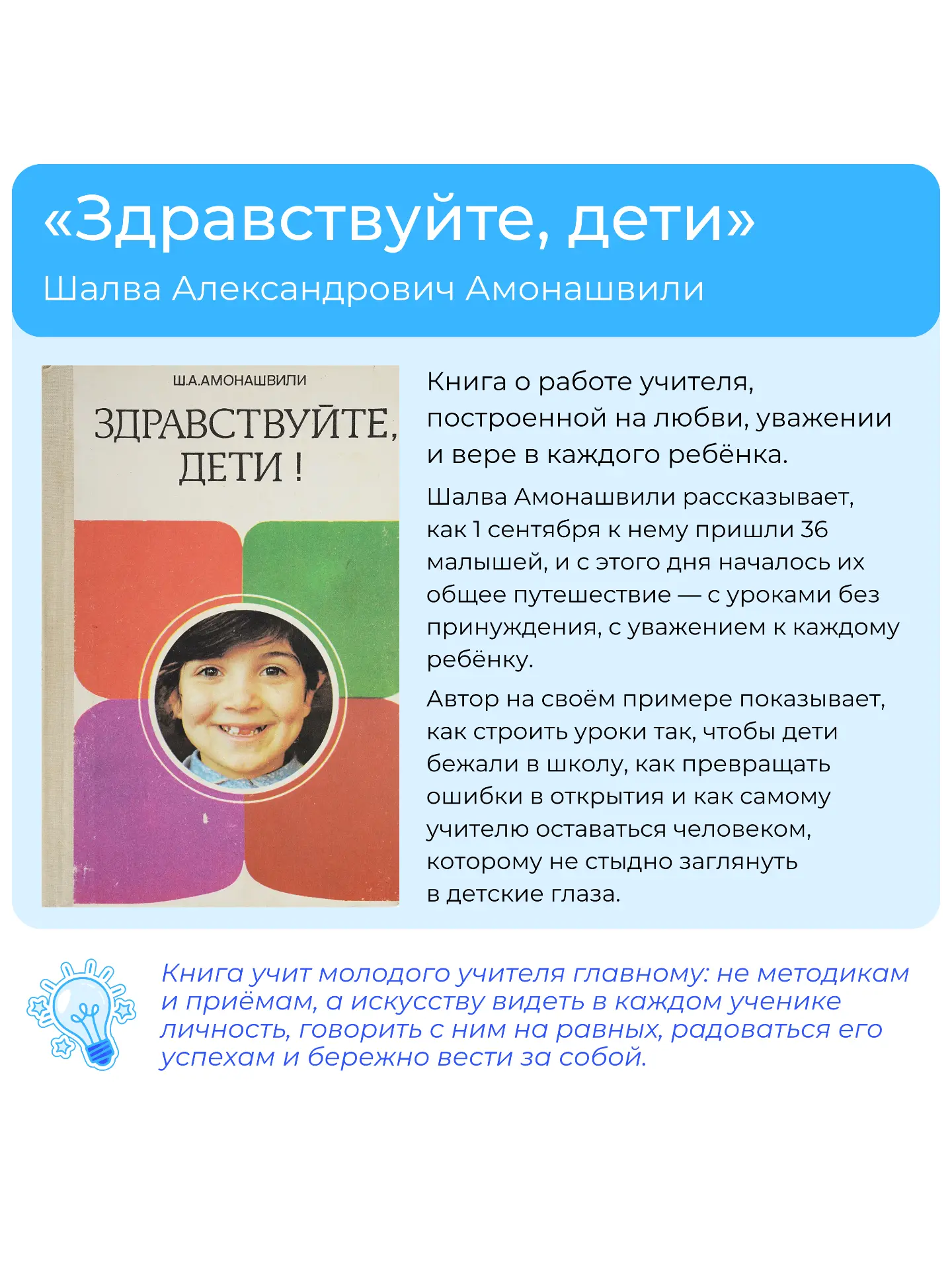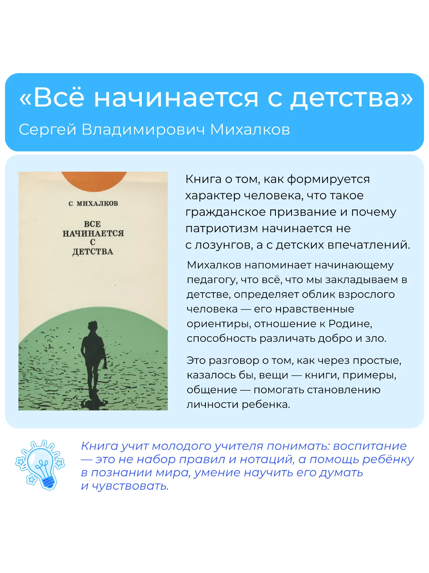 📖 Листайте карточки — там собраны произведения, которые вдохновляют, помогают находить общий язык с детьми и сохранить любовь к профессии.