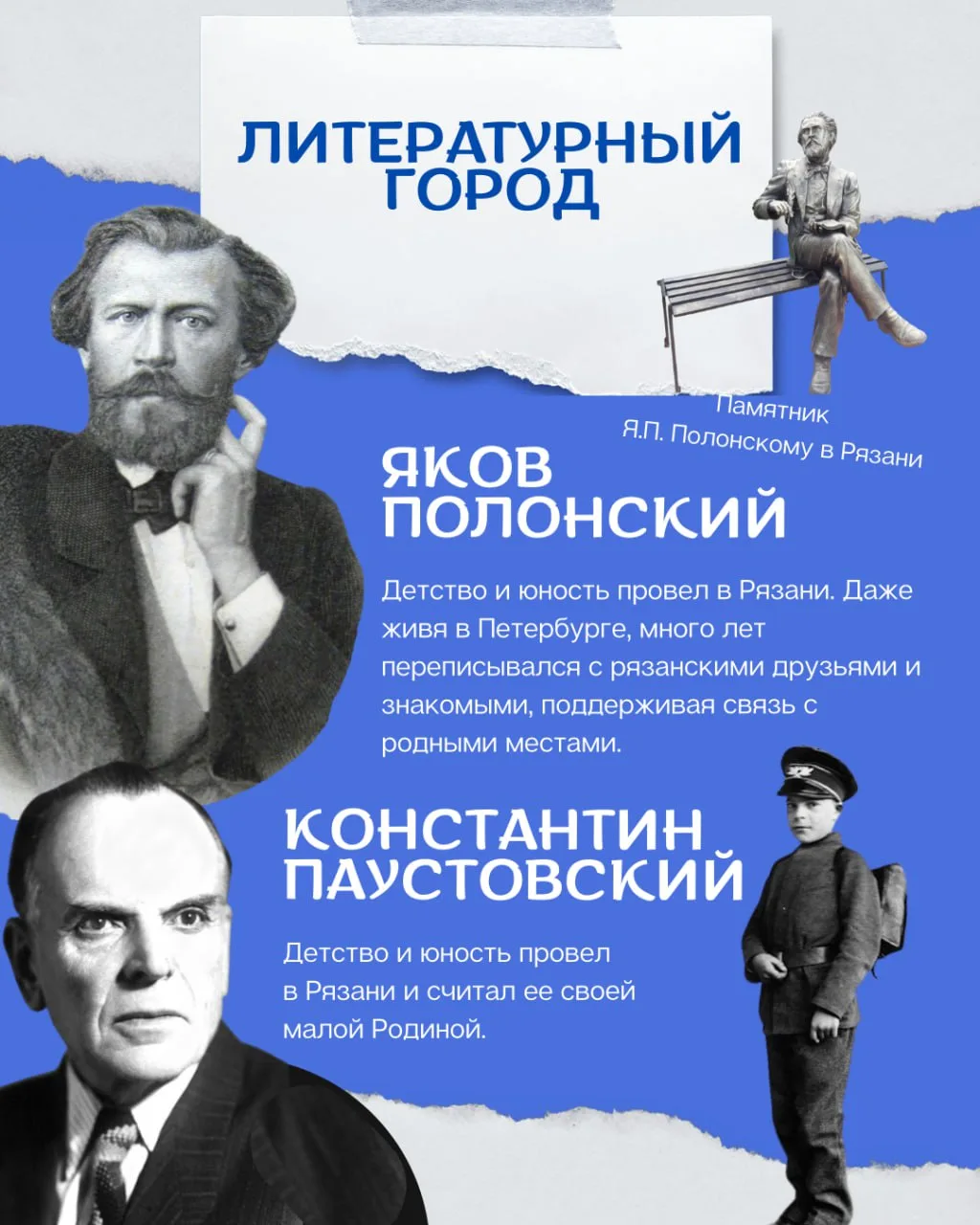 🔵 Литература. Малая родина Сергея Есенина, Якова Полонского, Константина Паустовского и других писателей.