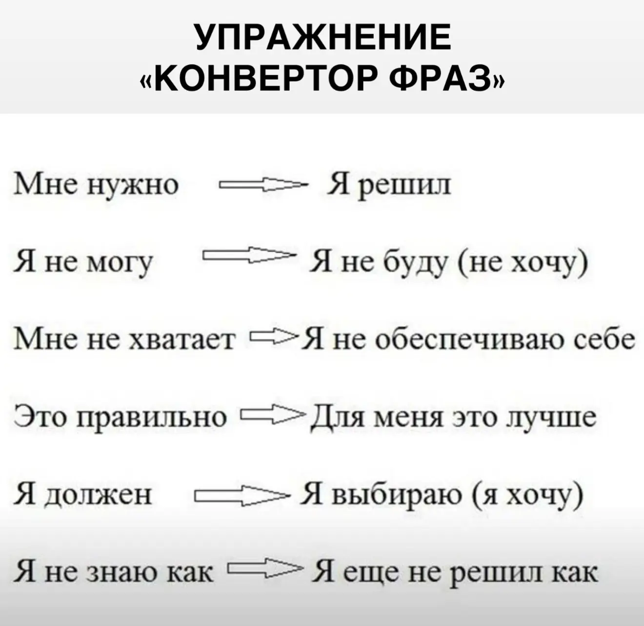 1️⃣ Напишите на листе бумаги все то, что вам навязывают или навязывали другие люди: родители, учителя, друзья, общество и т.д.