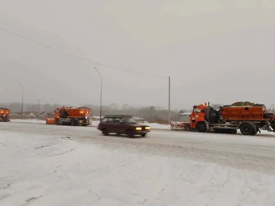 Снегопад и пурга вызвали также заносы на дорогах. Ведется ликвидация последствий стихии.