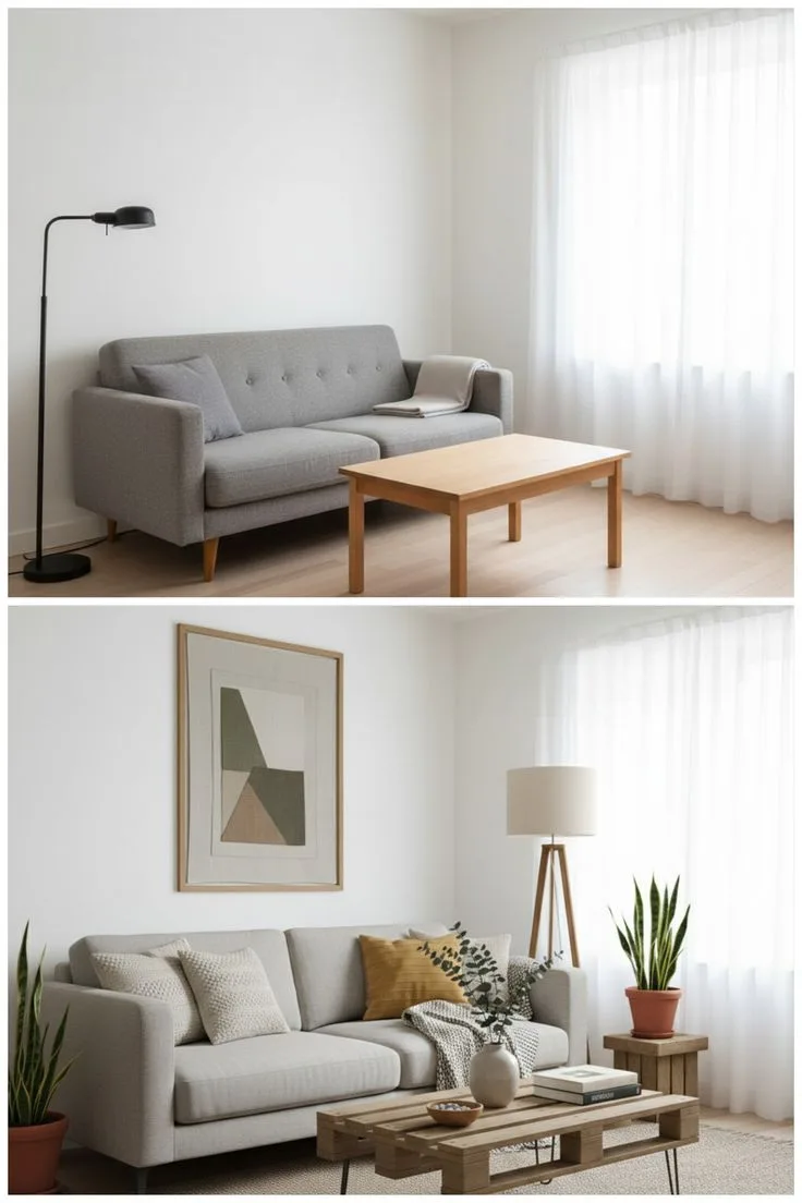 Обратите внимание на два этих примера. Слева минимализм , а Справа просто не хватило мебели