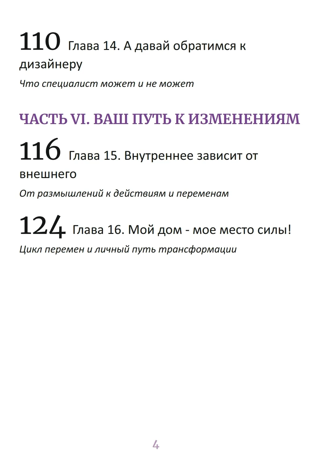 В моей книге я объясняю все механизмы, которые помогают понять связь вашей психики и дома. И вы можете убедиться, как губительно пренебрежение таким незначительными мелочами