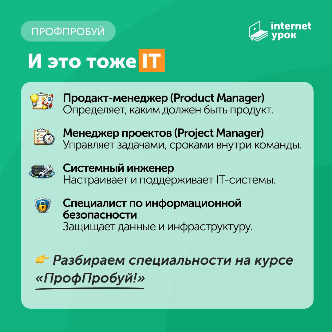 А уже сегодня на канале «ПрофПробуй!» будем подробно разбирать, чем на самом деле занимается IT-специалист. Присоединяйтесь 🙌