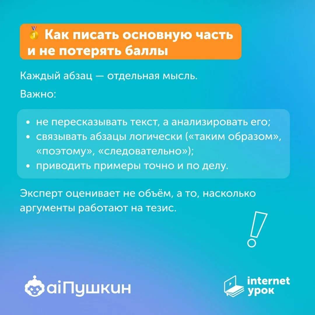 Не потому, что «плохо знает русский». А потому, что не так сформулировал тезис, не попал в логику критериев, неудачно привёл пример или не учёл мелкий, но важный нюанс в оформлении. Многие такие детали просто не попадают в фокус подготовки — и из-за этого потом выпускники теряют баллы.