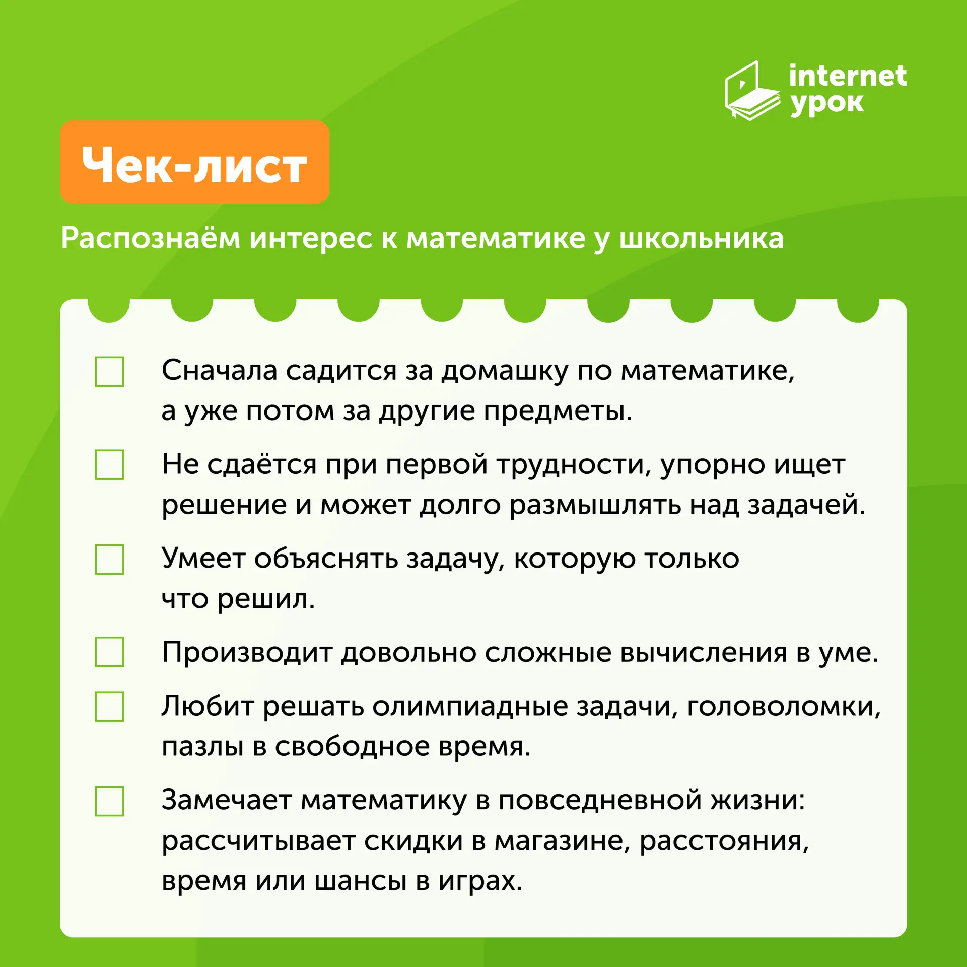 Если хотя бы 2–3 пункта совпали — у вашего ребёнка явно есть интерес к математике!