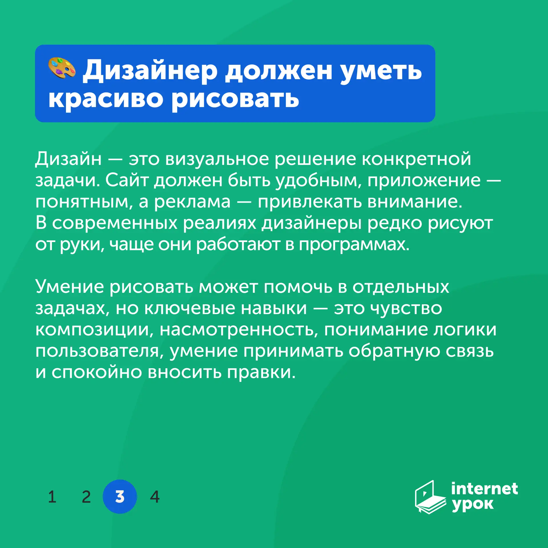 Мы поговорили с Анжеликой, дизайнером из команды ИнтернетУрока, и разобрали самые популярные стереотипы об этой профессии. Нужен ли диплом, чтобы быть востребованным? Правда ли, что обязательно нужно уметь рисовать от руки? И стоит ли бояться конкуренции с нейросетями? Смотрите наше видео, чтобы отделить вымысел от фактов!