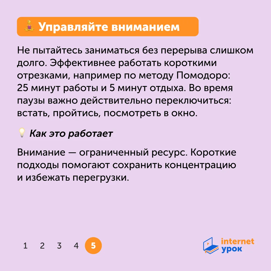 На курсах подготовки к ОГЭ и ЕГЭ в ИнтернетУроке мы не только учим правила и решаем задания экзаменационного формата, но и выстраиваем сам процесс учёбы. Мы работаем с памятью, вниманием и мышлением, потому что именно они определяют устойчивость подготовки и результат на экзамене.