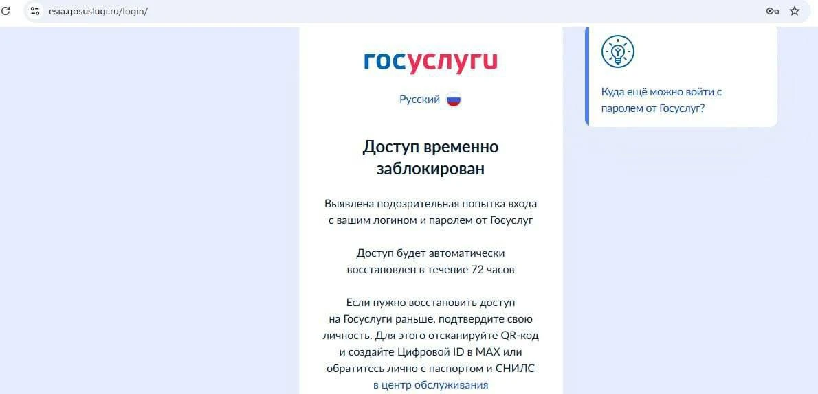 Для разблокировки придётся ждать 72 часа или подтвердить личность через госмессенджер Max
