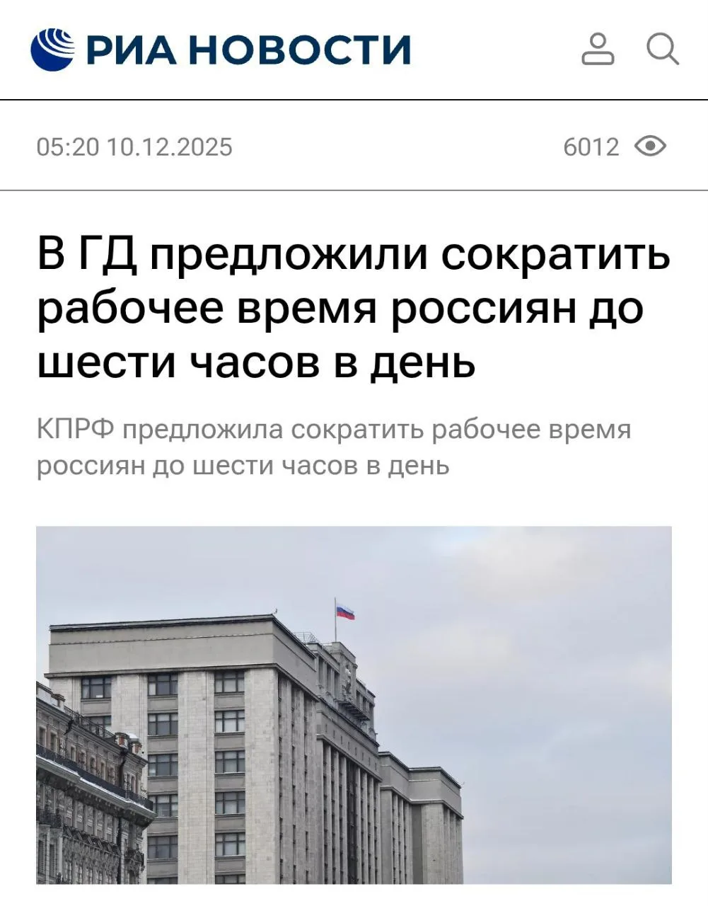 ⚡️ Рабочий день в РФ хотят СОКРАТИТЬ до 6️⃣ часов — уже сегодня депутаты внесут инициативу в Госдуму.
