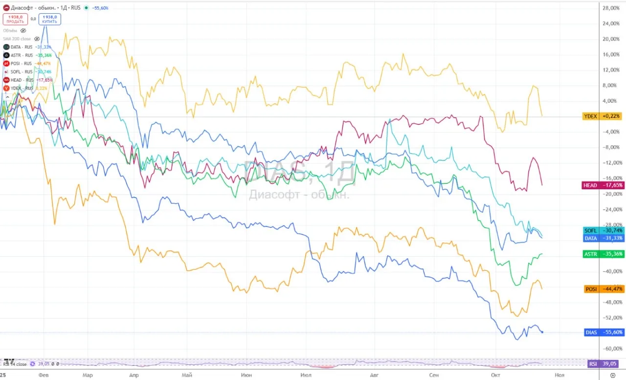 ✔️ И это не мое предположение, а слова гендиректора Ильи Сивцева. К сожалению, опасения оправдались. Год для IT-сектора выдался крайне тяжелым и проблемы не обошли стороной никого из публичных разработчиков ПО. А вишенкой на торте стали изначально высокие мультипликаторы из-за которых котировки сложились так сильно.