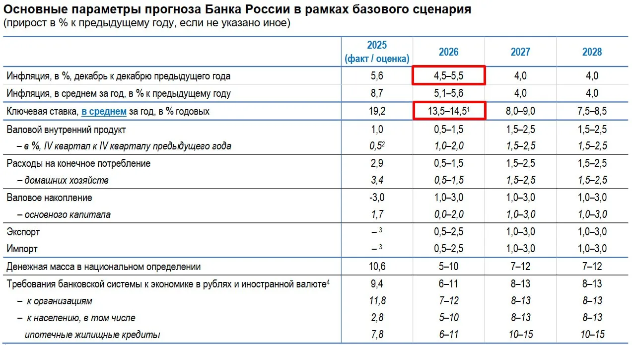 🏦 Как вы уже знаете, на заседании 13 февраля ЦБ снизил ключевую ставку до 15,5%. Параллельно регулятор смягчил свою риторику в отношении инфляции, что расширяет пространство для дальнейшего снижения ставки. С учетом проинфляционного фактора в виде повышения НДС, прогноз инфляции на 2026 год все же был скорректирован с 4% до 4,5-5,5%.