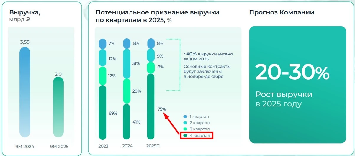 🤨 Первое и самое очевидное - результаты за 9 месяцев. Падение выручки на 45% г/г даже отдаленно не напоминает рост на 20-30%.
