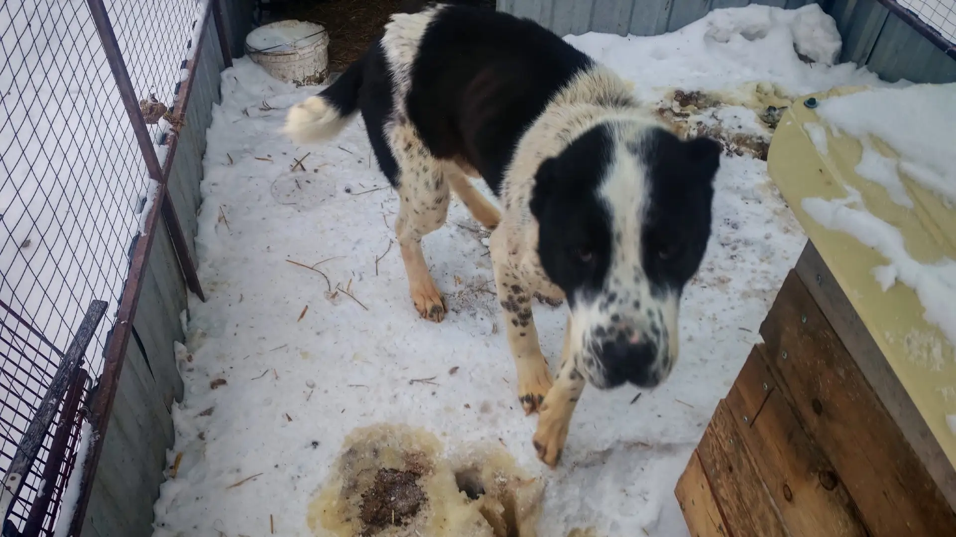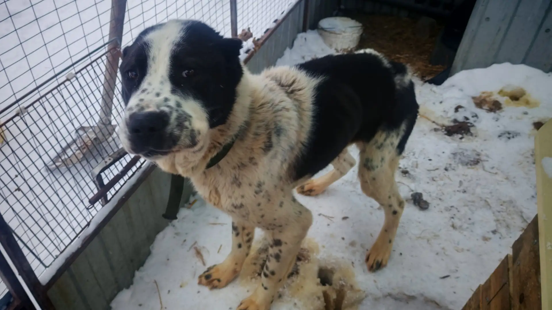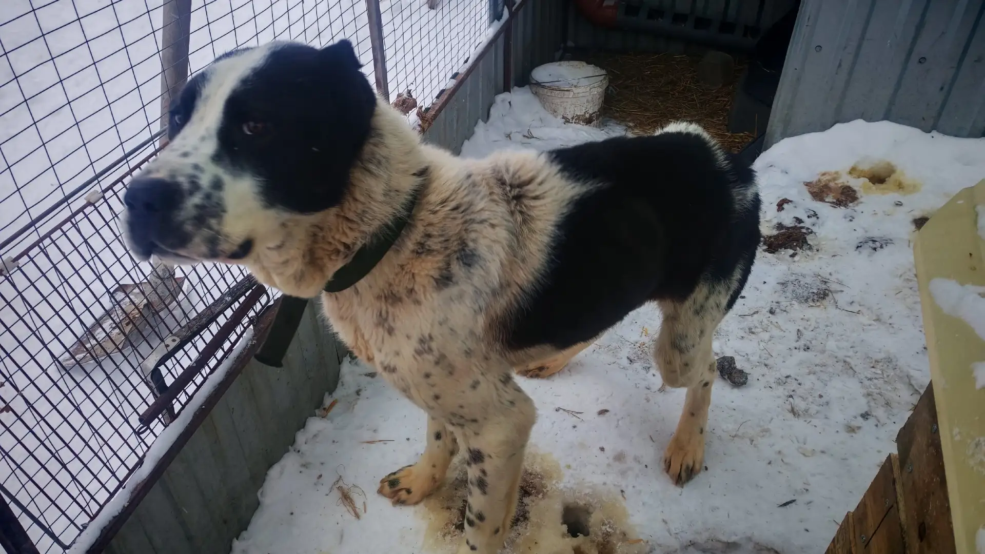 Мальчишка сейчас живёт в маленьком неотапливаемом вольере. Зато кормят. Не всегда получается выпустить его погулять,так как он не слишком ладит с другими собаками.