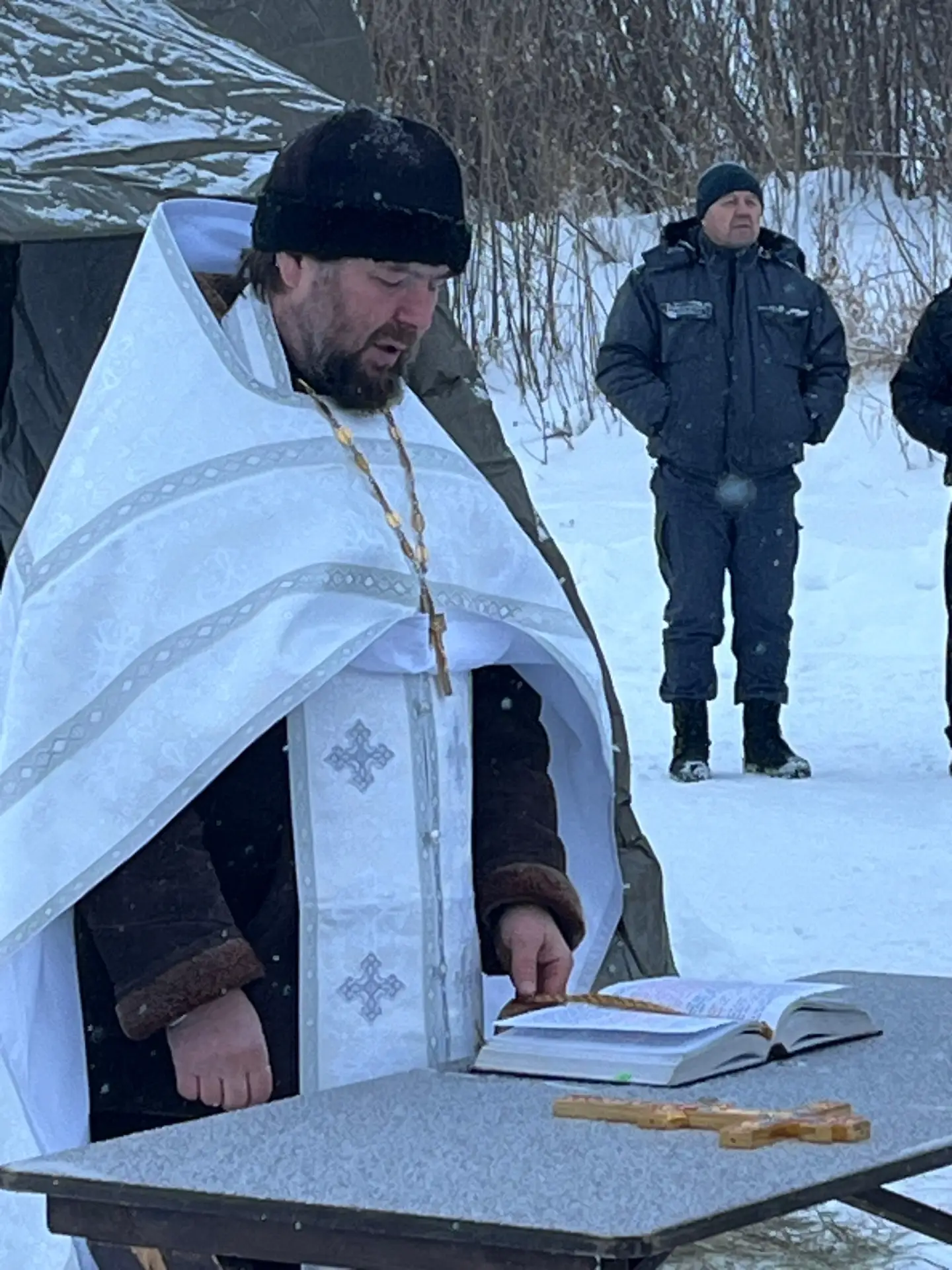 В этом году обряд освящения купели провел отец Сергий, настоятель храма в честь Сретения Господня.