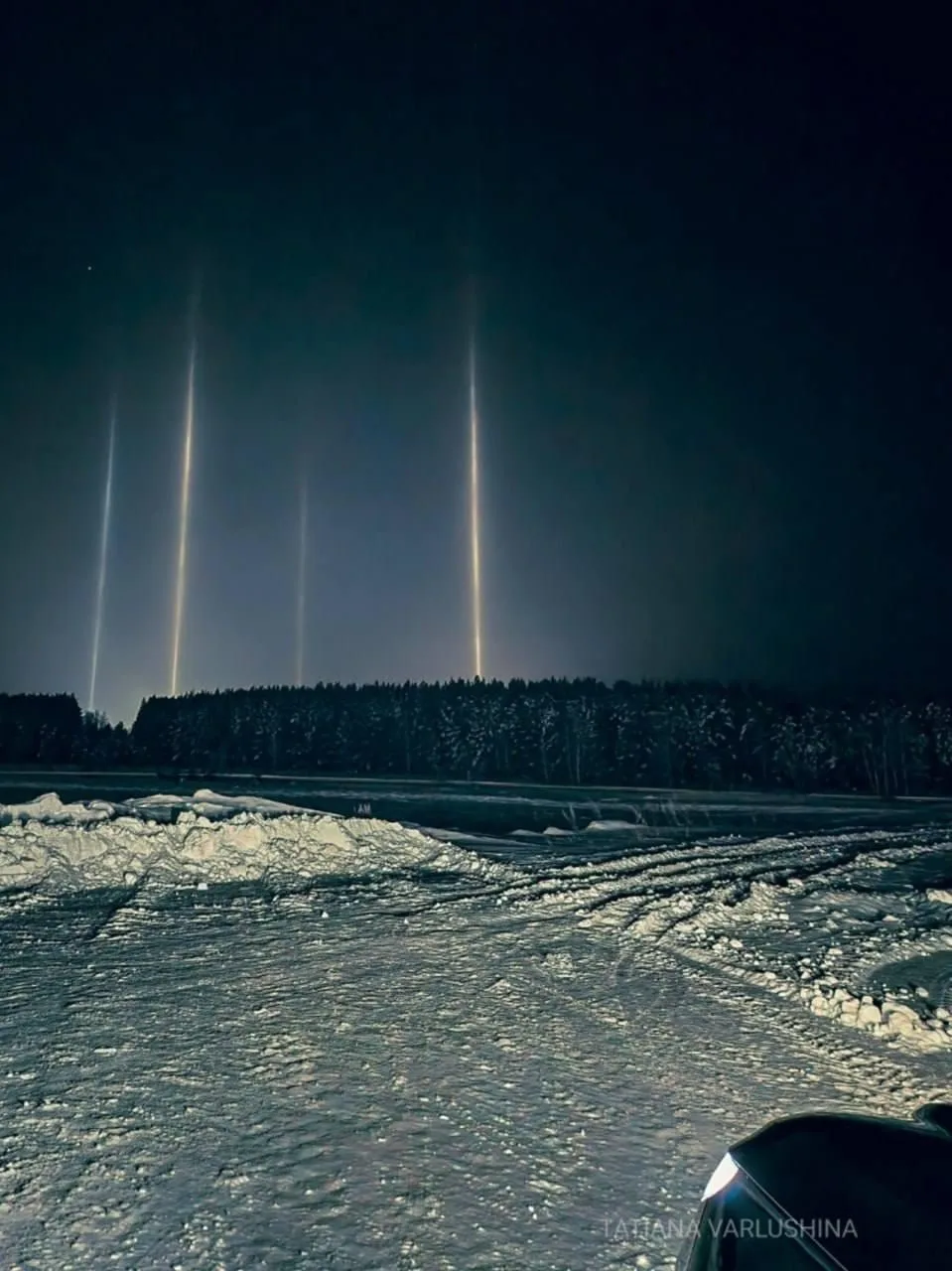 Над Ирбитом сегодня ночью появились световые столбы, явление, которое бывает в сильные морозы