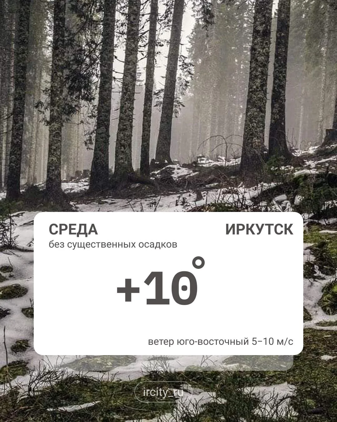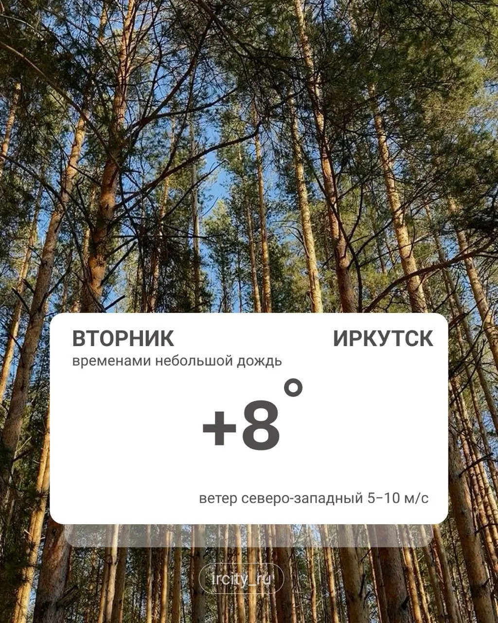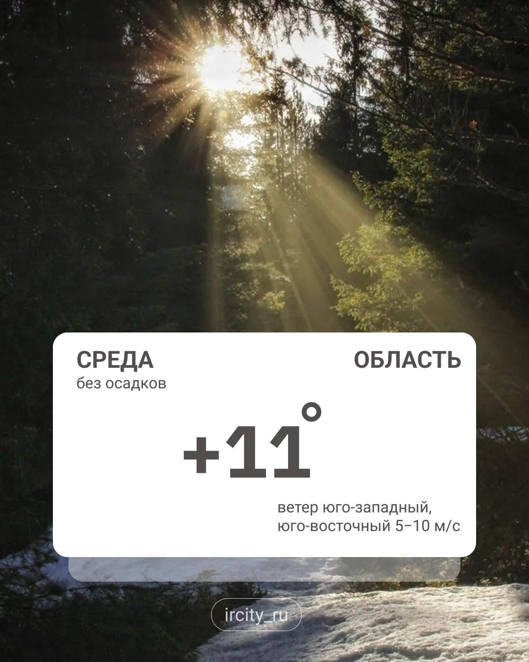 ⏺В Иркутске в среду ожидают погоду без осадков. Ночью ожидаем до -3 градусов, днем воздух прогреется до +10.