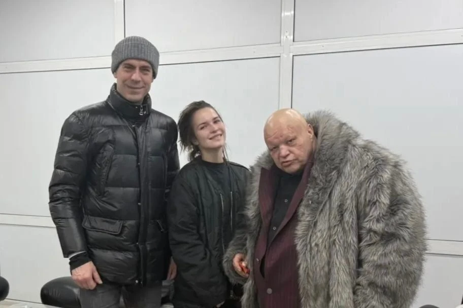 Дмитрий Дюжев, Лукерья Ильяшенко и Стас Барецкий сфотографировались с фанатами в аэропорту Братска.