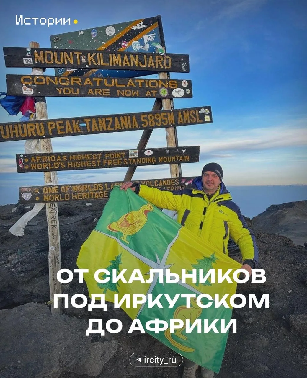 Для сибиряка это не первая вершина. На каждой он делает снимок с флагом Чунского района. @ircity_ru разыскали Руслана.