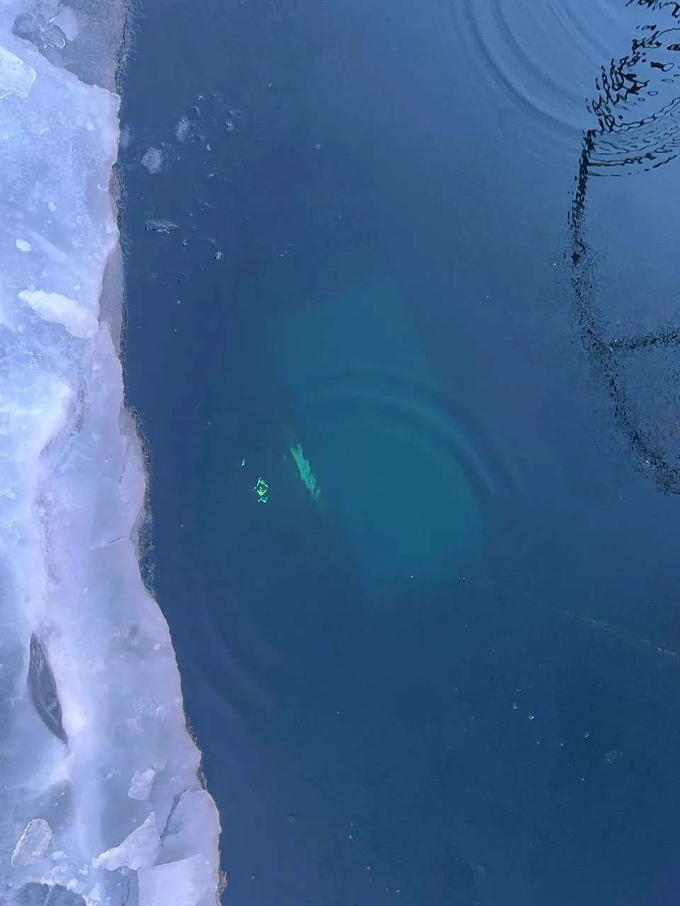 В МЧС сообщили, что «буханка» упала в ледовый разлом шириной 3 метра. Глубина там составляет 18 метров.