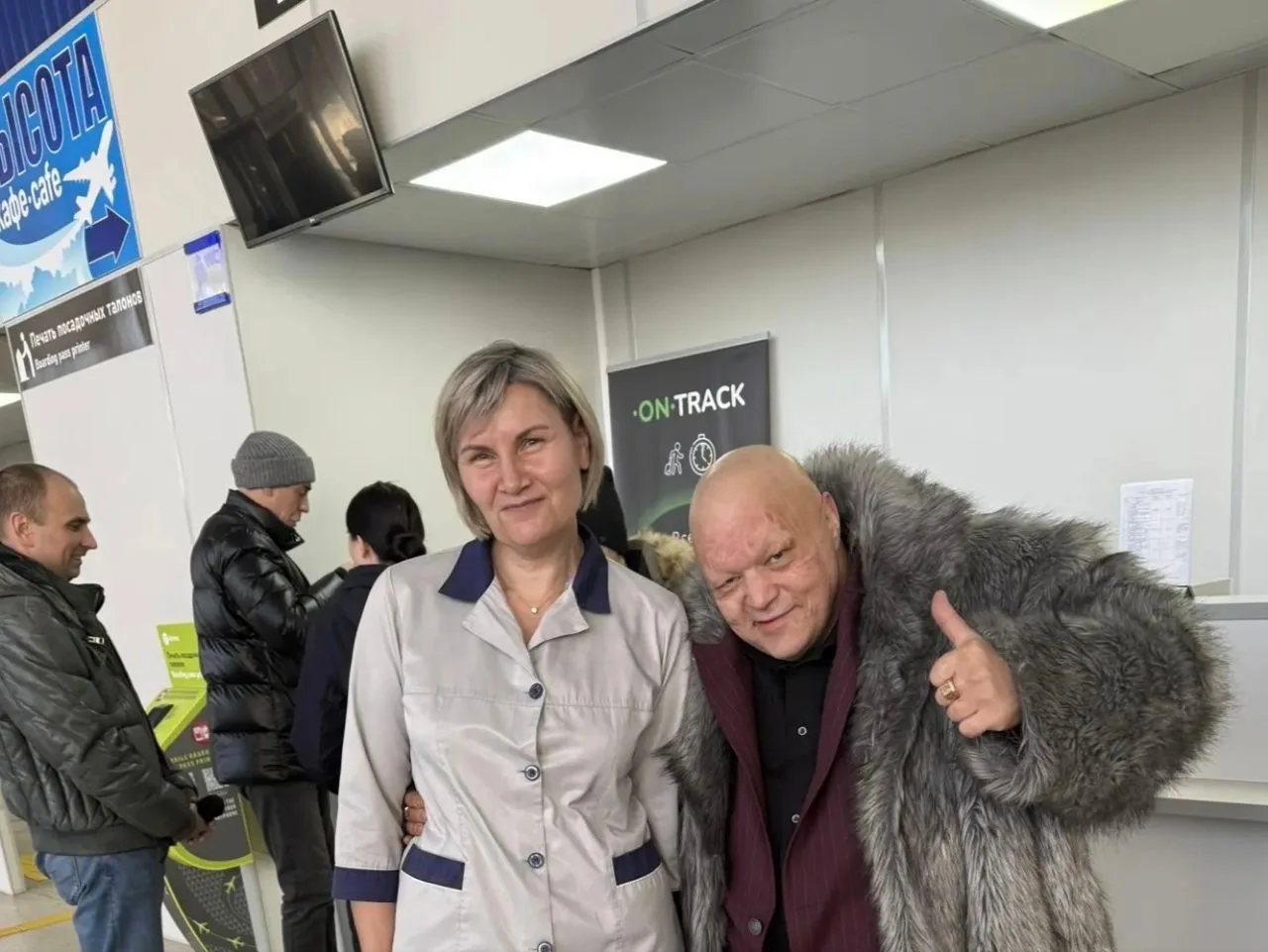Актёры сфотографировались с сотрудницами кафе в аэропорту. Одна из них тоже засветится в фильме Паюкова.