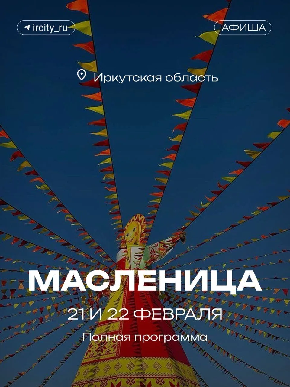 Завтра, 22 февраля, здесь будет широкая Масленица (0+). В программе — народные гуляния и 5000 бесплатных блинов, а на закате — световое шоу и дискотека.