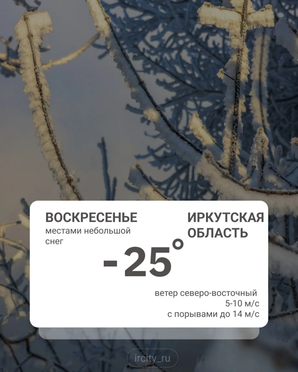По данным иркутского гидромета, среднесуточные температуры упадут на 7-16 градусов ниже нормы.