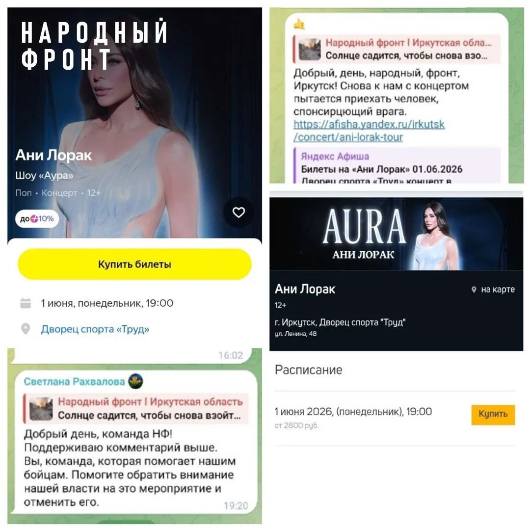 🔔Иркутяне требует через Народный фронт отменить концерт Ани Лорак.
